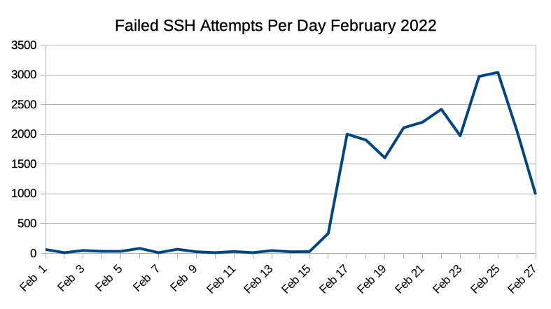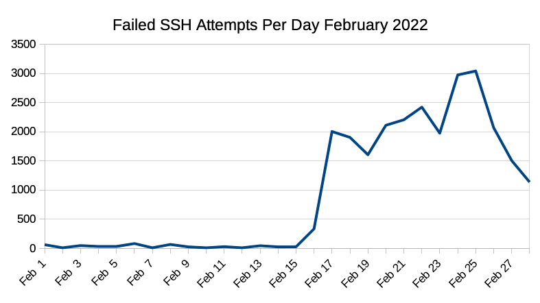 Looking at data I collect for other, quite pragmatic, reasons I see a clear correlation between the run-up to the Russian invasion of Ukraine earlier this month and the password guessing activity targeting non-classified systems in my care.